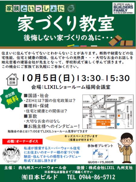 今回も年2回開催の「家づくり教室」をLIXIL福岡ショールームで今月開催しました。