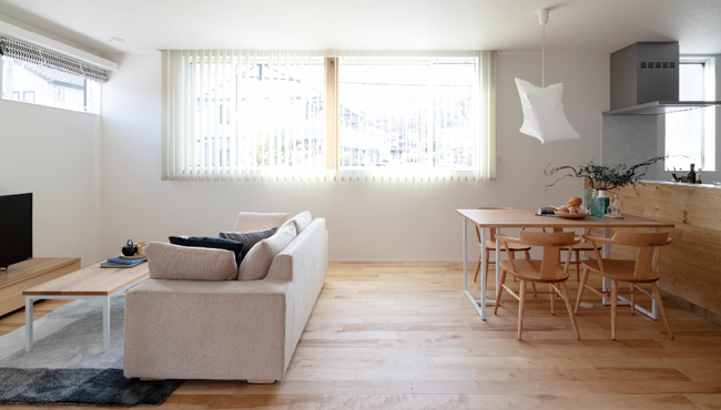 TRETTIO標準仕様のスーパーウォール工法の家は、業界最高水準の基本性能を誇る、高気密・高断熱・高耐震構造。高性能なスーパーウォールパネルと高断熱サッシ及び計画換気システムが、健康・快適・安心の理想的な住環境を実現します。地震や台風などの大きな外力にもしっかり備える構造と、北欧の機能的デザインを取り入れたシンプルモダンな内装や家具も魅力です。